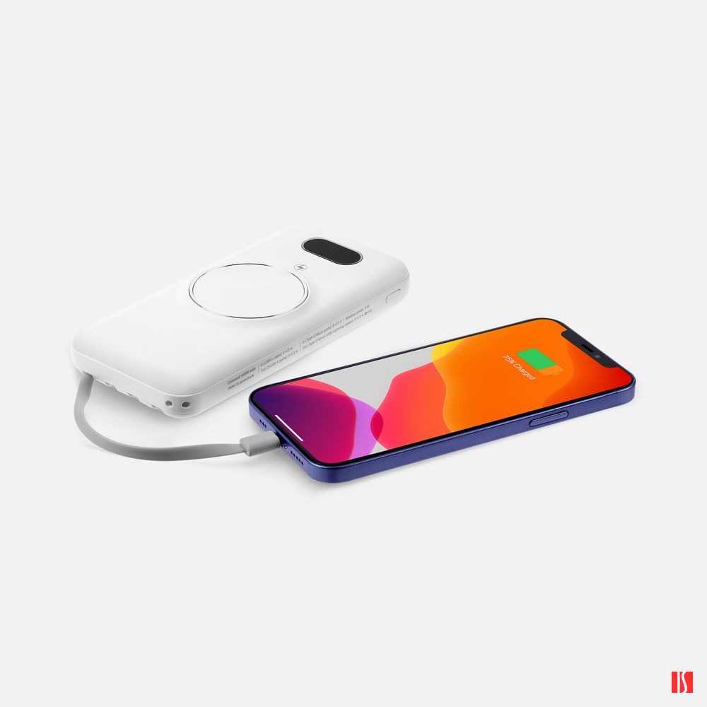 Интересная особенность аккумуляторов Omni — совершенно автономная конструкция: встроенные кабели позволяют заряжать как самые разные электронные устройства, так и сам аккумулятор. Если же смартфон поддерживает беспроводной заряд, то кабель вообще не нужен. Наглядный индикатор заряда в процентах.