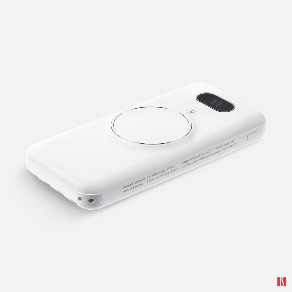 Обновленная версия аккумулятора Omni Qi 10000 мАч — теперь с покрытием софт-тач. Приятная на ощупь и визуально равномерная поверхность пластика.