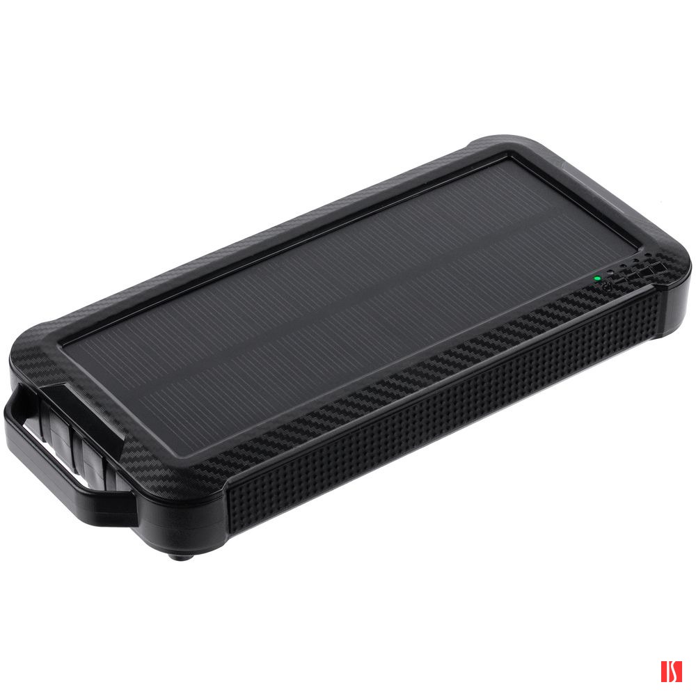 Прорезиненные вставки и рисунок на корпусе с имитацией карбона добавляют хорошей агрессивности внешнему виду аккумулятора — сразу видно, что его хозяин готов к приключениям.