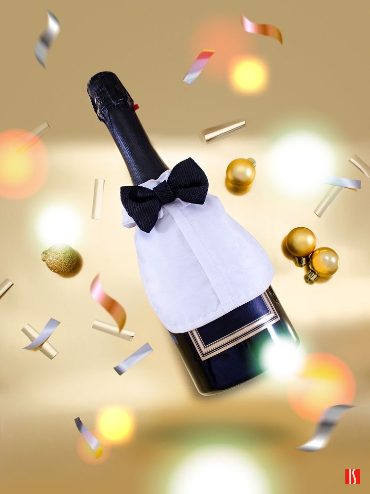 Украшение на бутылку шампанского Black Tie: когда дресс-код соблюдают абсолютно все за праздничным столом.