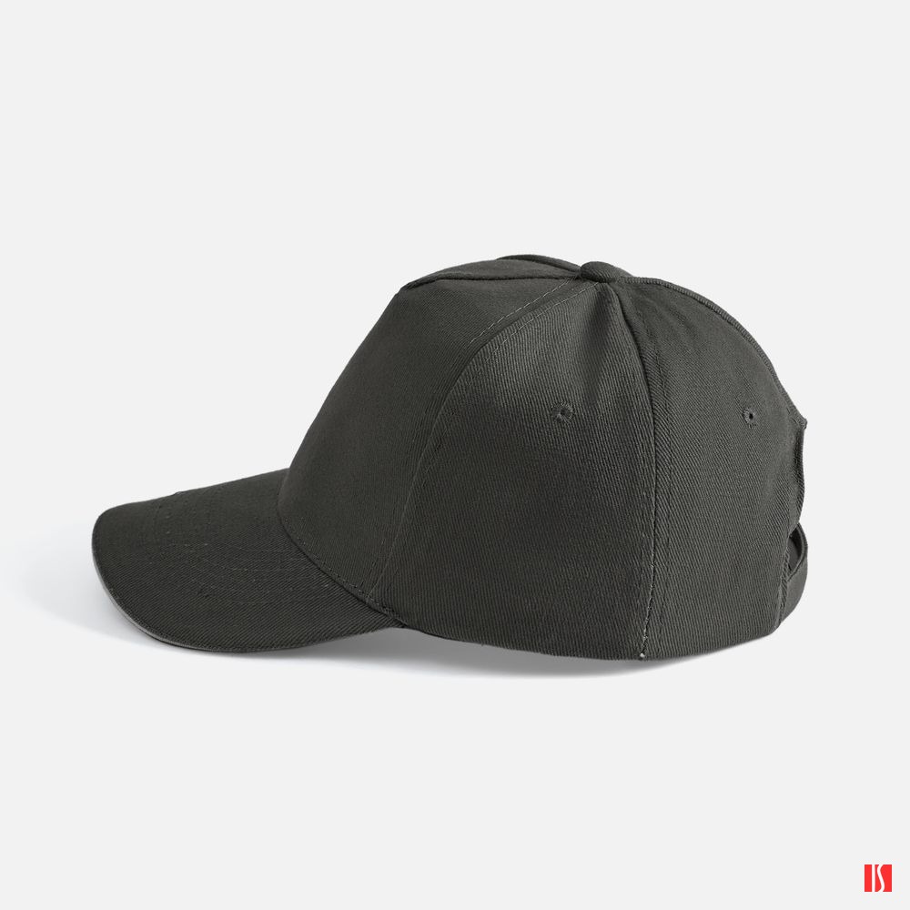 Заказать с нанесением логотипа от компании «Синтезис». Модель бейсболки с 5-ю клиньями без лобового шва из плотного чесаного хлопка.