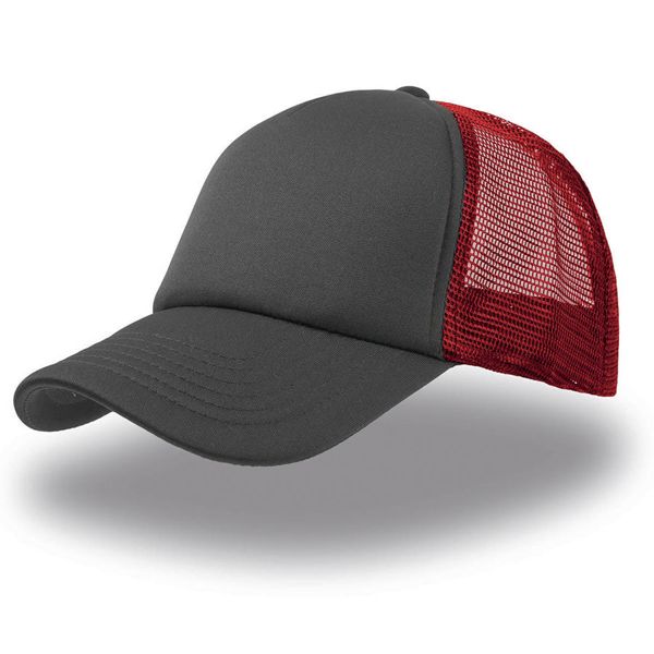 Бейсболка "RAPPER", 5 клиньев, пластиковая застежка, красный серый;100% полиэстер, плотность 80 г/м2