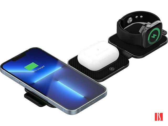 Заказать с нанесением логотипа от компании «Синтезис». Познакомьтесь с зарядной станцией Canyon WCS-305 — отличным решением для избавления от путаницы зарядных кабелей. Совместимая с большинством смартфонов и устройств, соответствующих стандарту Qi, включая iPhone, Apple Watch и AirPods, эта компактная станция является настоящей многозадачной и позволяет заряжать до трех устройств одновременно. Она поддерживает технологию быстрой зарядки, защищает устройства от перегрева и других угроз и контролирует процесс зарядки. В сложенном виде WS-305 имеет карманный размер. Вы можете придать ей форму треугольника, и он станет универсальным держателем для телефона, позволяющим разместить ваше устройство вертикально или горизонтально. Беспокоитесь о том, чтобы продолжать свои дела? Нет проблем! Высокая эффективная дальность зарядки станции гарантирует, что ваши устройства будут заряжаться без особых усилий, а их корпуса останутся нетронутыми. Ваши гаджеты будут в безопасности благодаря противоскользящему покрытию, обеспечивающему дополнительную защиту, а светодиодная подсветка с первого взгляда информирует вас о происходящем. Готовы избавиться от этих надоедливых проводов прямо сейчас?