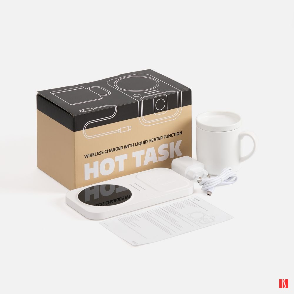 Беспроводное зарядное устройство с подогревом кружки Hot Task, белое