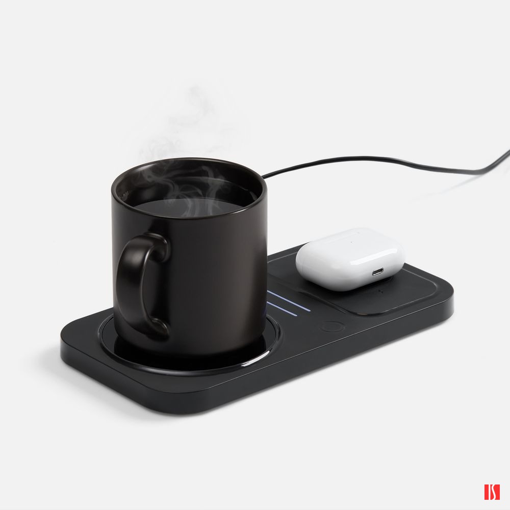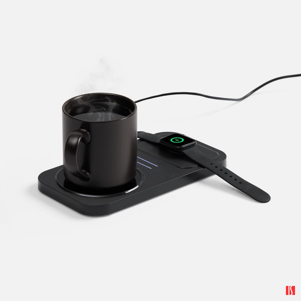 На основании предусмотрены две зоны: для подогрева напитков и поддержания их температуры и для зарядки смартфонов, часов Apple Watch и наушников с поддержкой беспроводной зарядкиQi. Зарядка начнется автоматически при размещении устройств на индукционной площадке.