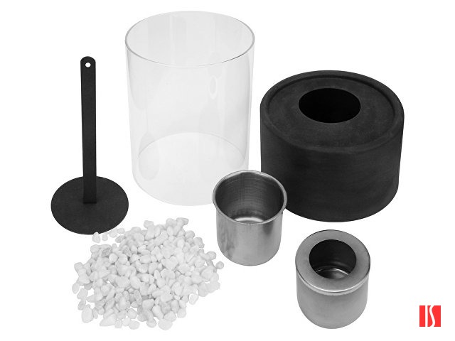 биокамин со стеклянной колбой- 1шт, емкость для топлива- 1шт, декоративные камни, заглушка для тушения пламени- 1шт, инструкция по применению