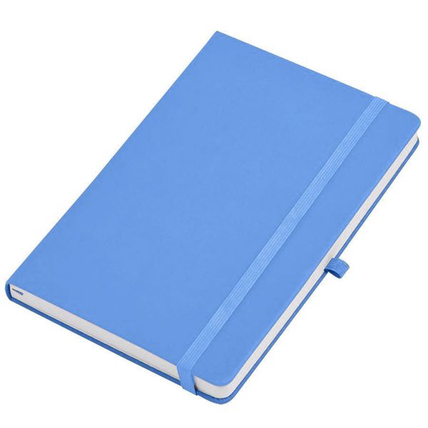 Бизнес-блокнот "Justy", 130*210 мм, светло-голубой, твердая обложка, резинка 7 мм, блок-линейка