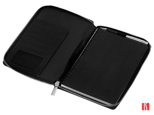 Блокнот снабжен 5 отделениями для карт и RFID защитой, которая охраняет вашу личную и финансовую информацию от мошенников. Внутри блокнота есть петля для ручки в тон (ручка в комплект не входит). Заказать с нанесением логотипа от компании «Синтезис».