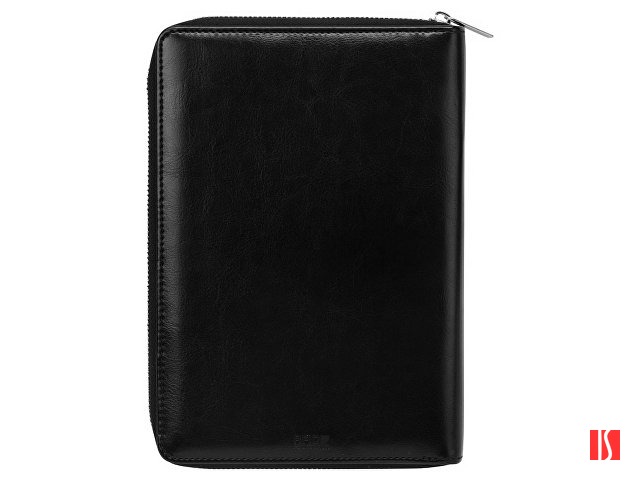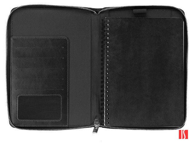 Бизнес блокнот Fabrizio состоит из пенала на молнии выполненного из искусственной кожи, и сменной тетради на 80 листов на кольцах с перфорированными линованными листами белого цвета.