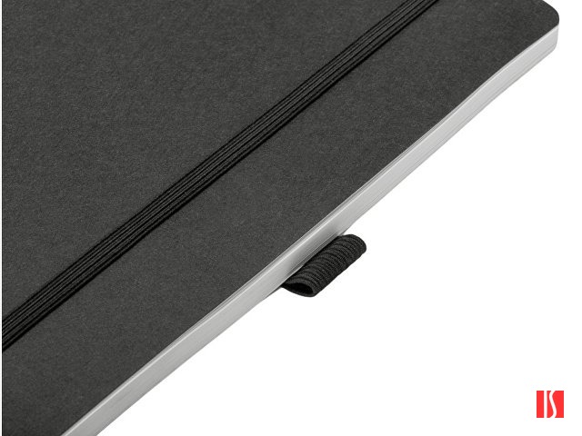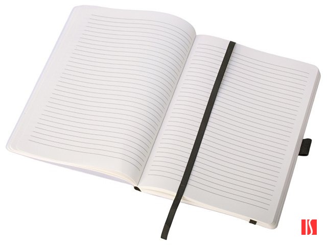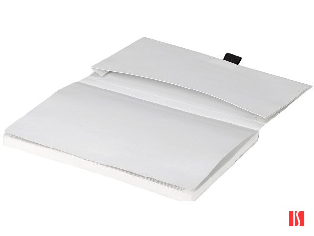 Также блокнот снабжен резинкой и петлей для ручки. Упаковка — конверт из нетканого материала с логотипом.