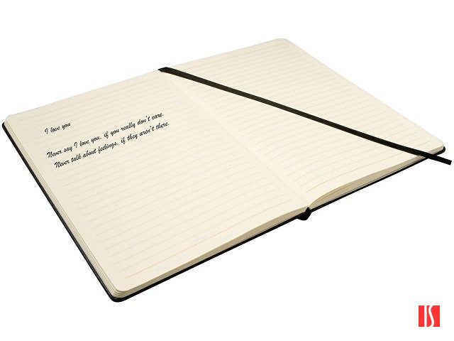 Классический офисный блокнот. Эксклюзивный классический блокнот в твердой обложке (размера А5) с эластичной застежкой и 80 листами линованной бумаги (80 г/м2), идеально подходящий для записей и заметок. Дополнительный кармашек сзади для небольших заметок. Заказать с нанесением логотипа от компании «Синтезис».