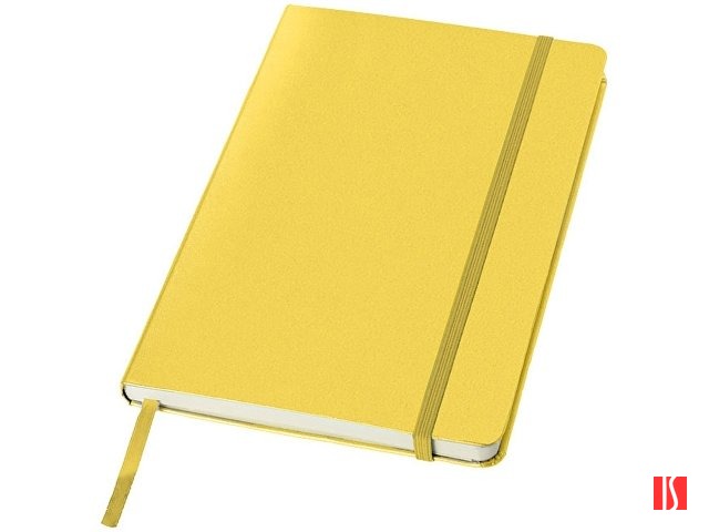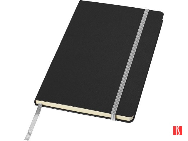 Традиционный офисный блокнот. Эксклюзивный традиционный блокнот в жесткой обложке (размера А5) с эластичной застежкой и 80 листами линованной бумаги (80 г/м2), совершенно пригодный для записей и заметок. Доп карман сзаду для маленьких заметок. Тиснение (Блинт) на этот продукт производится безвозмездно. Оплачивается лишь настройка оборудования в размере 3000 рублей на весь тираж. Заказать с нанесением логотипа от организации «Синтезис».