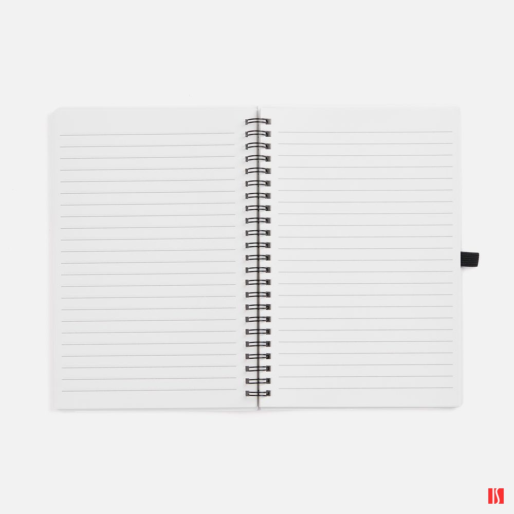 Блокнот из каменной бумаги на пружине с резинкой для ручки.