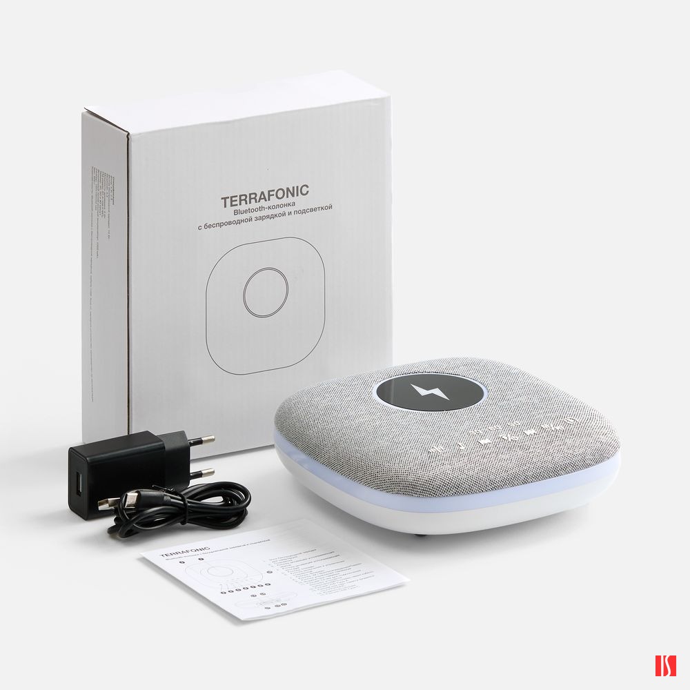 Bluetooth-колонка с беспроводной зарядкой и подсветкой Terrafonic, серая