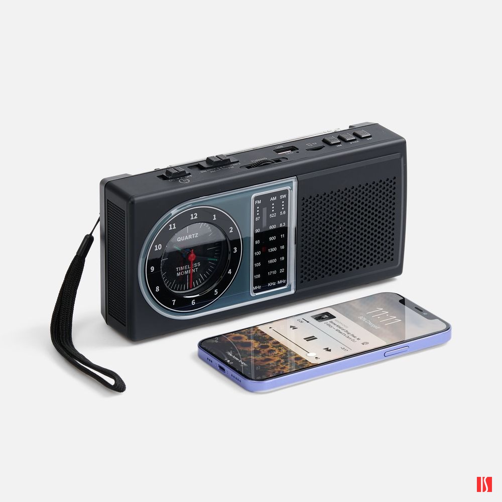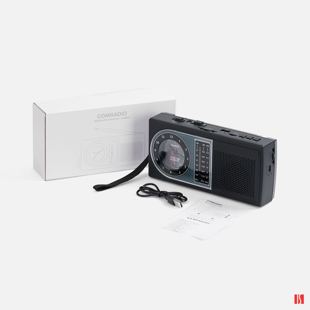 Bluetooth-колонка в ретростиле Comradio с аналоговым тюнером станет отличным подарком и вызовет легкую ностальгию: чтобы поймать радиоволну, нужно выдвинуть антенну и покрутить колесо настройки, прямо как в старые добрые времена.