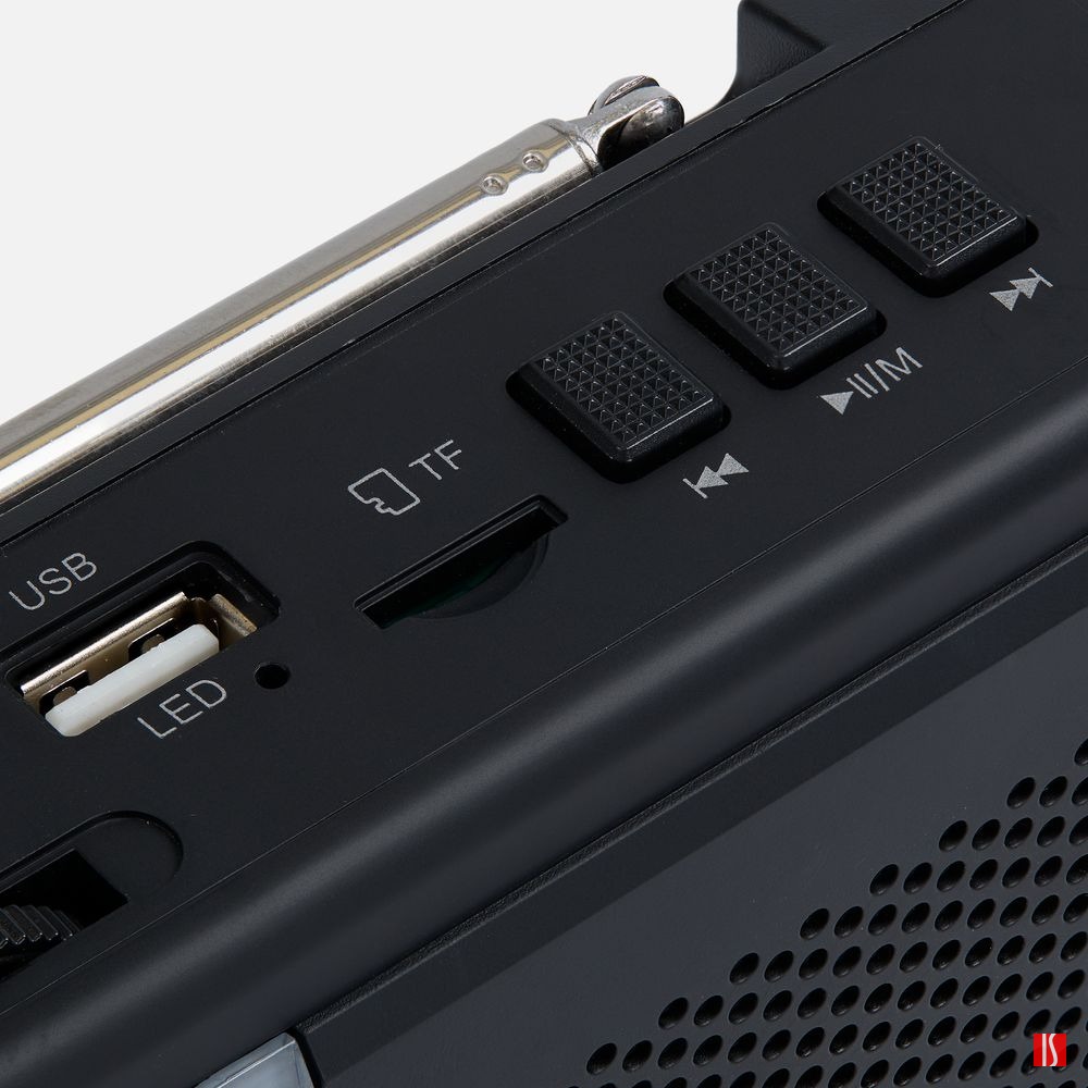 В корпусе скрываются вполне современные функции: возможность воспроизведения музыки по Bluetooth и с карт памяти формата microSD.