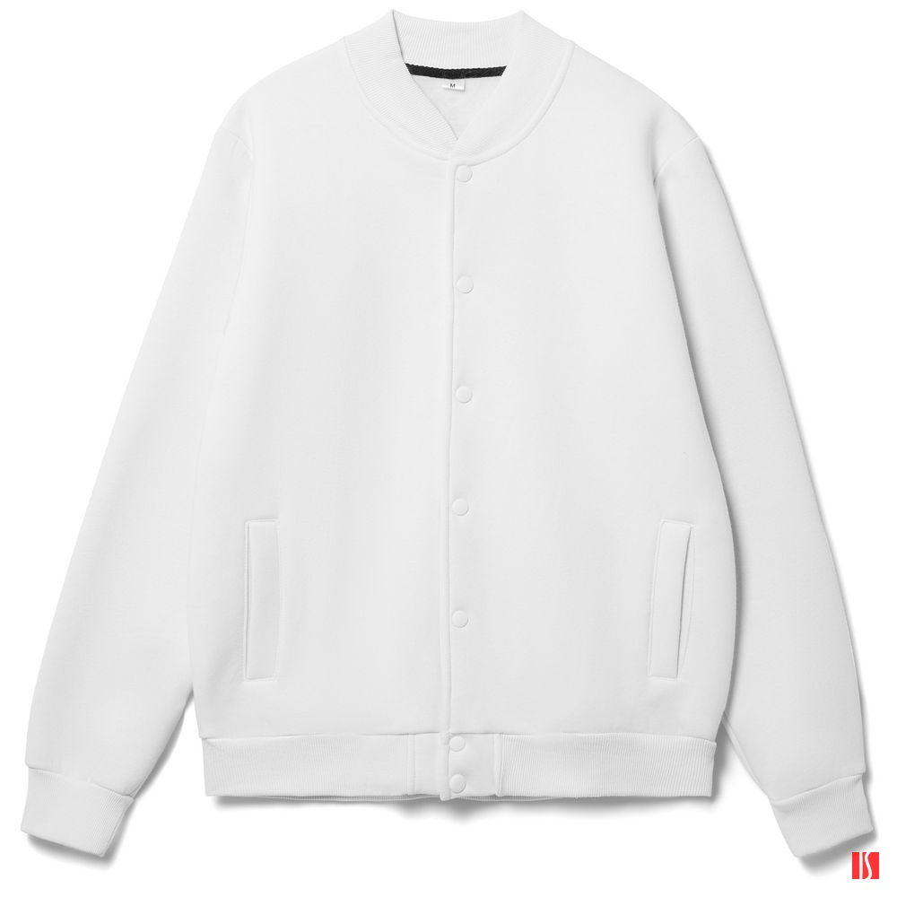 Заказать с нанесением логотипа от компании «Синтезис». Классический бомбер унисекс свободной посадки на кнопках.
