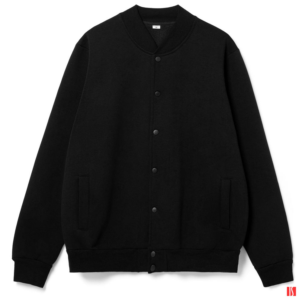 Заказать с нанесением логотипа от компании «Синтезис». Классический бомбер унисекс свободной посадки на кнопках.