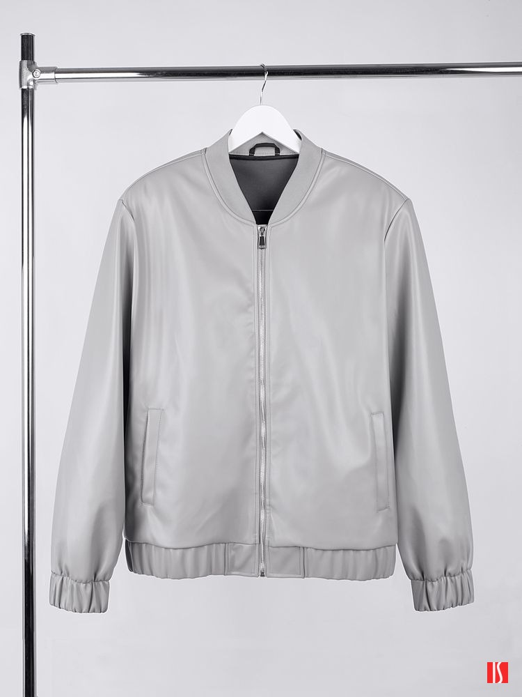 Бомбер из искусственной кожи Univer, серый