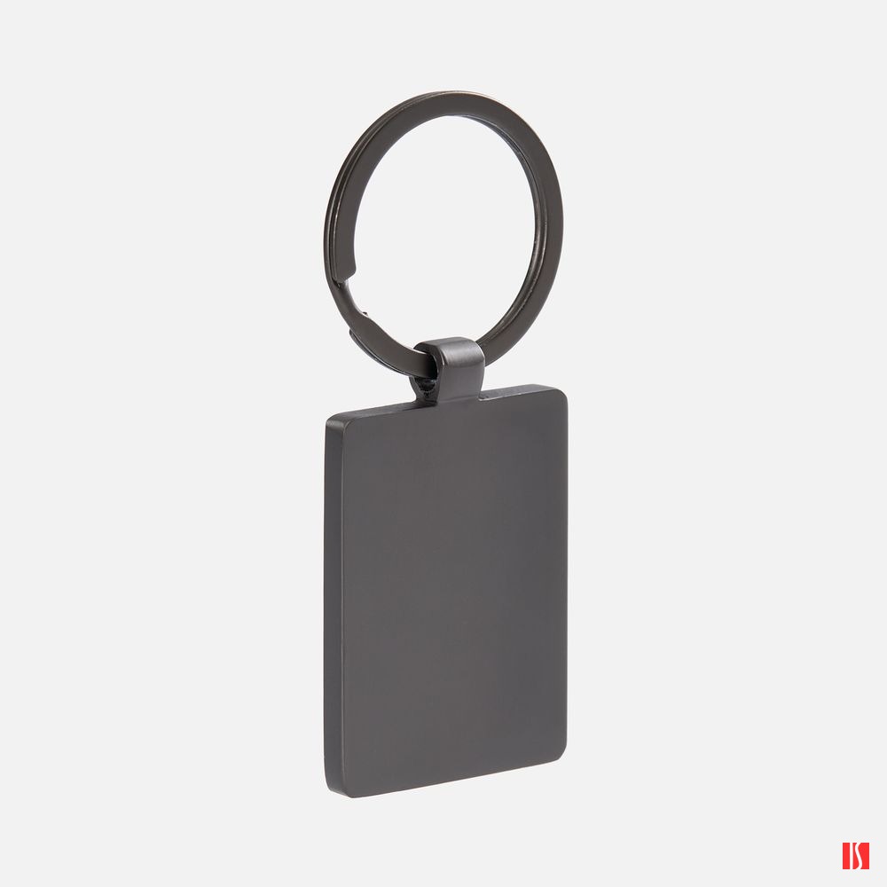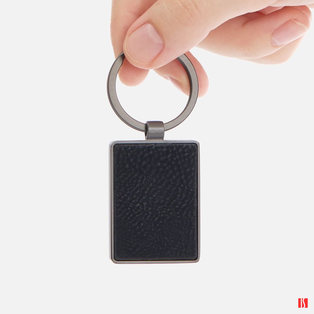 Металлический брелок со вставкой из искусственной кожи для гравировки.
