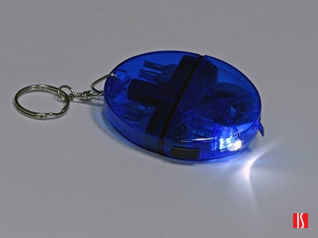 Брелок-рулетка с набором отверток и фонариком, синий, Alexandra