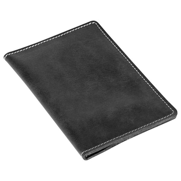 Заказать с нанесением логотипа от компании «Синтезис». Бумажник для документов из натуральной кожи с декоративной строчкой.
