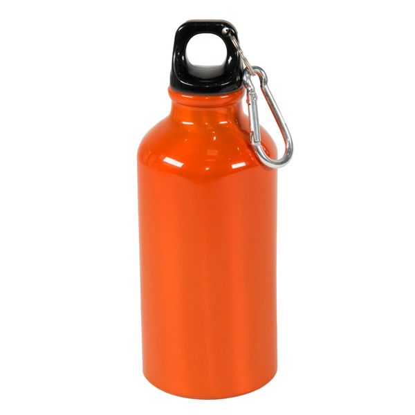 Цветная алюминиевая бутылка с удобной навинчивающейся пробкой и карабином для крепления к рюкзаку, сумке или одежде.