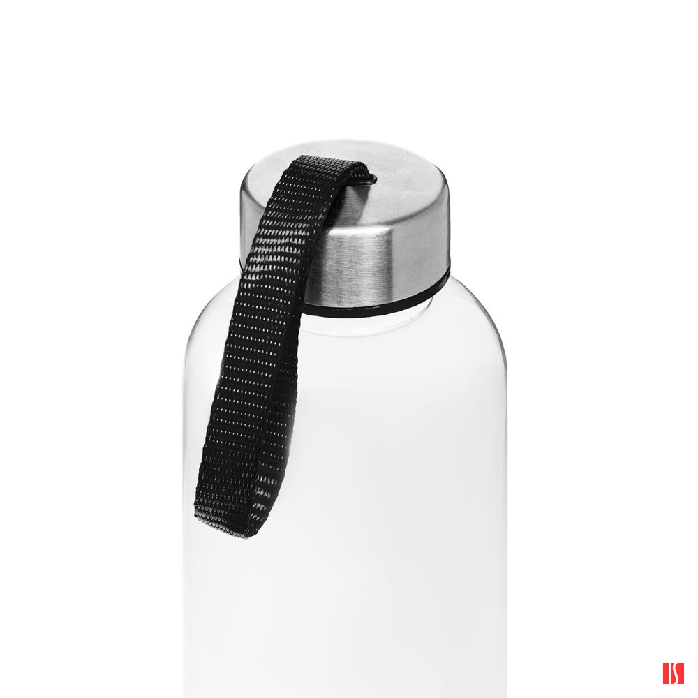 Заказать с нанесением логотипа от компании «Синтезис». Бутылка для воды классической формы с удобной петлей для переноски и широкими возможностями по нанесению: помимо круговой УФ-печати доступны гравировка крышки или полноцветный трансфер на ремешке.