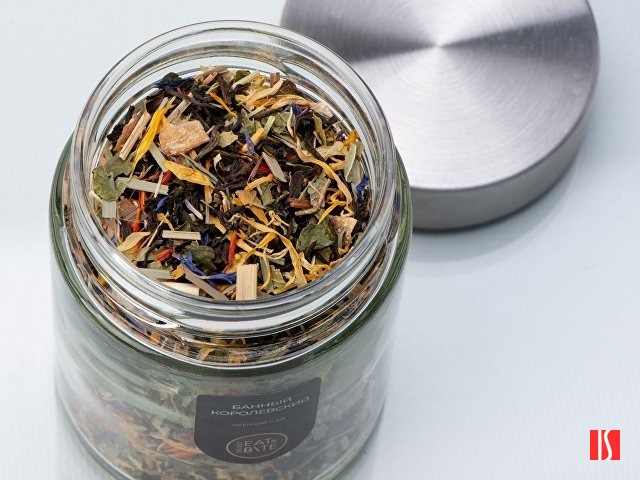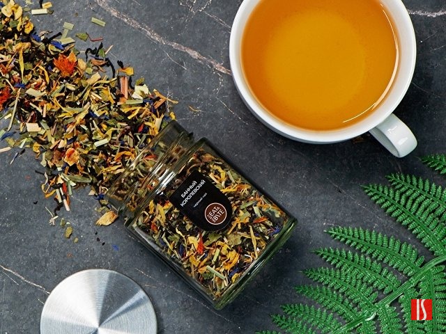 - упакован в стильную стеклянную банку, которая сохраняет все ароматы чая. Заказать с нанесением логотипа от компании «Синтезис».