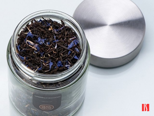 - упакован в стильную стеклянную банку, которая сохраняет все ароматы чая. Заказать с нанесением логотипа от компании «Синтезис».