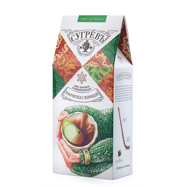 Чай чёрный «Шарлотка с корицей» – это купаж отборного индийского чая с кусочками яблока, корицы и другими согревающими ингредиентами.