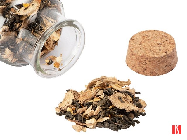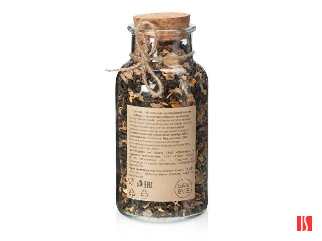 Состав: чай зелёный с имбирём и соком имбиря (чай зелёный байховый крупнолистовой, кусочки имбиря, сок имбиря), апельсиновая цедра сушёная, ароматизатор натуральный "Апельсин". Заказать с нанесением логотипа от компании «Синтезис».