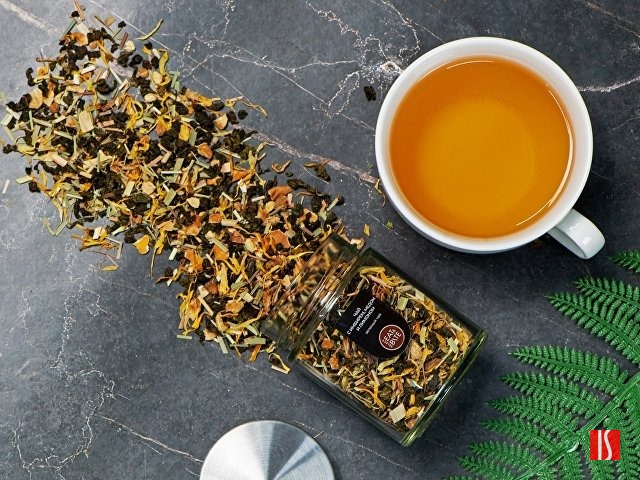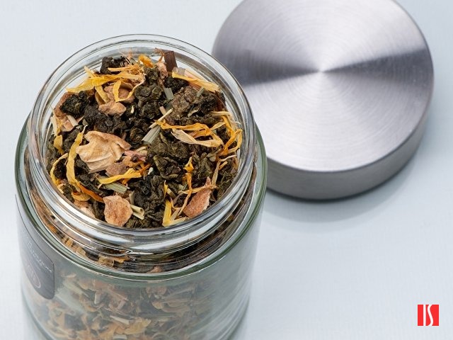 - упакован в стильную стеклянную банку, которая сохраняет все ароматы чая. Заказать с нанесением логотипа от компании «Синтезис».