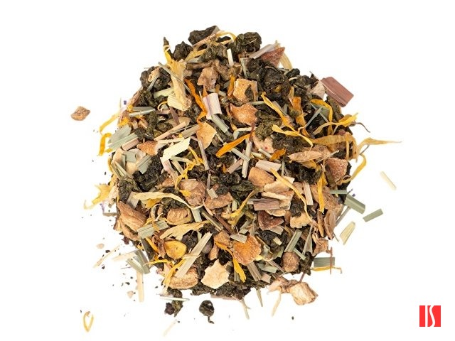 - состав сбора: китайский чай Тегуаньинь, имбирь, цедра лимона, лимонная трава, медовые гранулы, лепестки календулы;