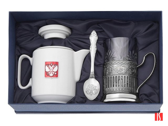 Чайный набор «ЭГОИСТ» состоит из серебристого подстаканника, хрустального стакана, ложки и фарфорового чайника. Если вы выбираете подарок для ценителей русской культуры и дореволюционной эстетики, то такой чайный набор станет идеальным вариантом. Заказать с нанесением логотипа от компании «Синтезис».