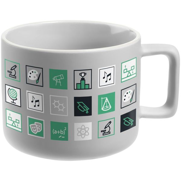 В каждой части общего рисунка изображены главные символы строительства.Емкость 400 мл. Заказать с нанесением логотипа от компании «Синтезис».