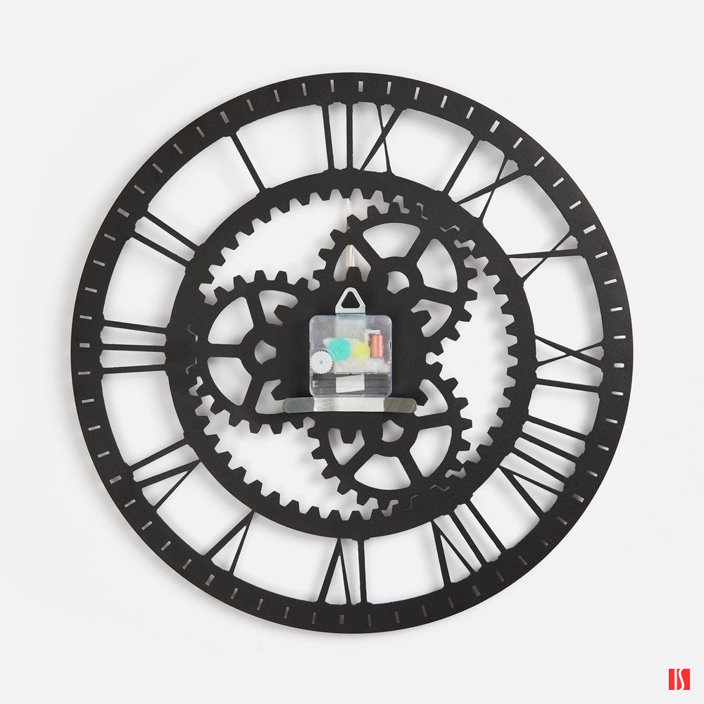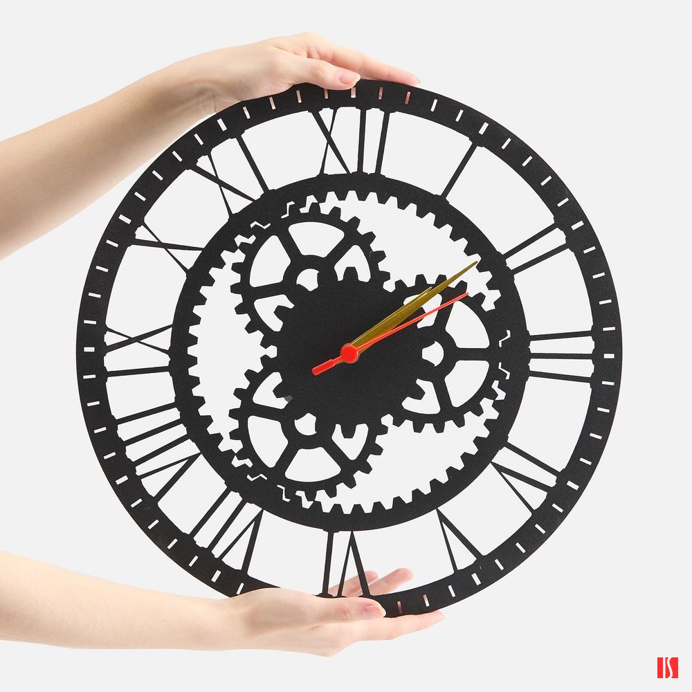 Заказать с нанесением логотипа от компании «Синтезис». Электронно-механические кварцевые настенные часы «Ход времени» из металла с дизайном в виде шестеренок и большим диаметром — это не только функциональный аксессуар для контроля времени, но и произведение искусства, способное украсить любое пространство и добавить ему уникальности.