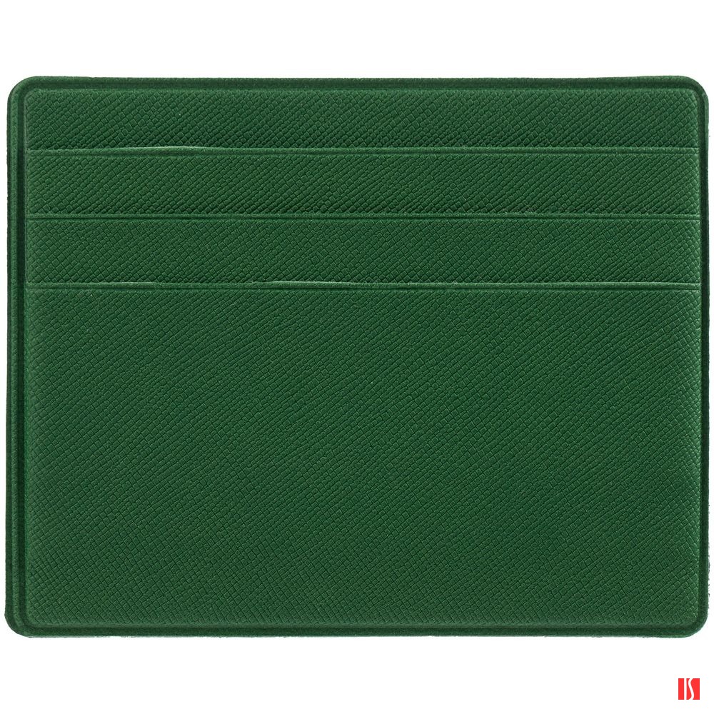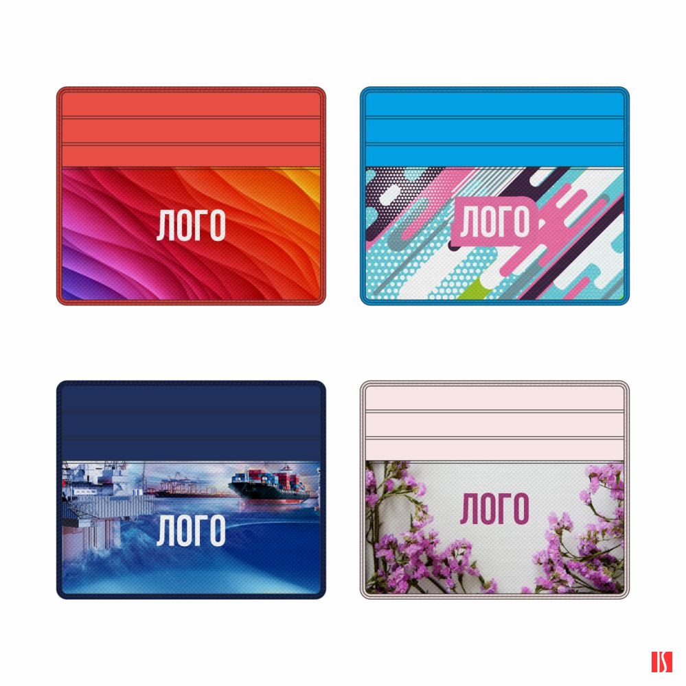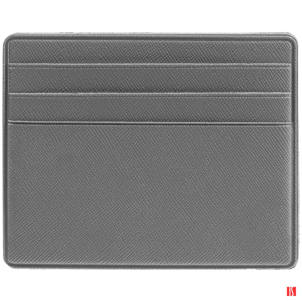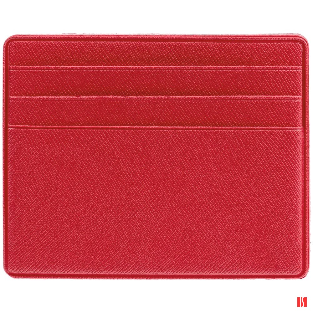 Чехол для карточек из искусственного материала, имитирующего сафьяновую кожу, с шестью отделениями для кредитных карт и одним — для сложенных купюр. Заказать с нанесением логотипа от компании «Синтезис».