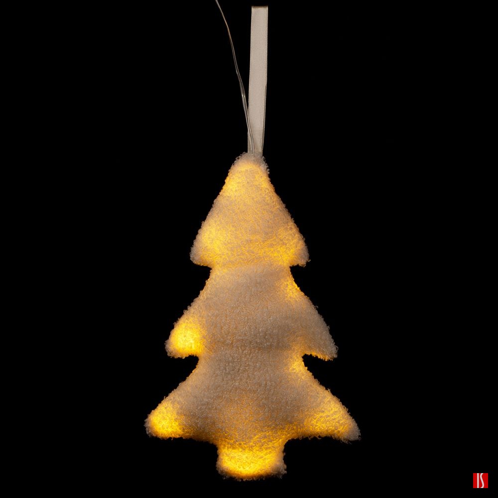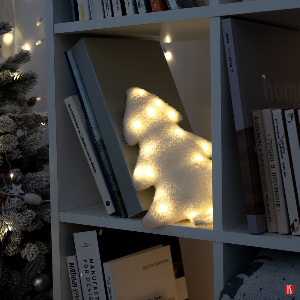 Внутри мягкой елочки находится миниатюрная гирлянда с теплым светом. Работает от 2 батареек типа CR2032 (входят в комплект). Заказать с нанесением логотипа от компании «Синтезис».