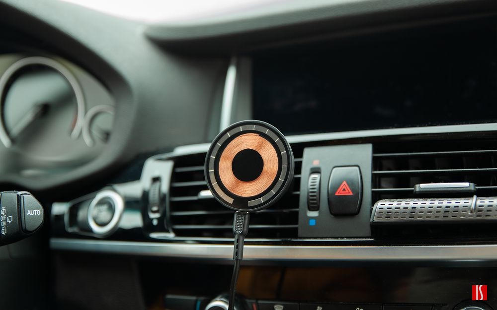 Магнитный держатель для смартфона в дефлектор Cooper Auto Wireless — это не только притягивающая взгляд электронная «начинка» под прозрачной панелью, но и устройство для удобной беспроводной зарядки телефона в автомобиле.