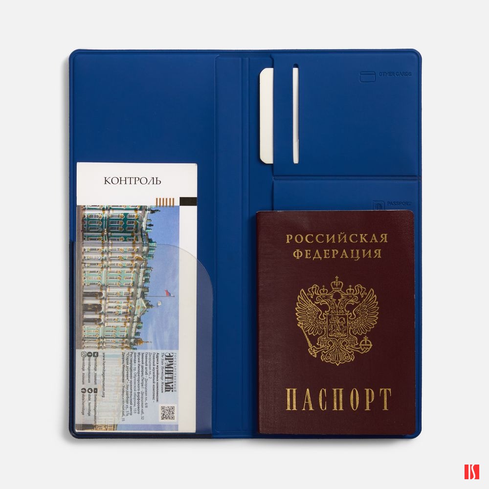 Органайзер имеет 5 отделений: для билетов, паспорта, визиток или кредитных карт. Заказать с нанесением логотипа от компании «Синтезис».