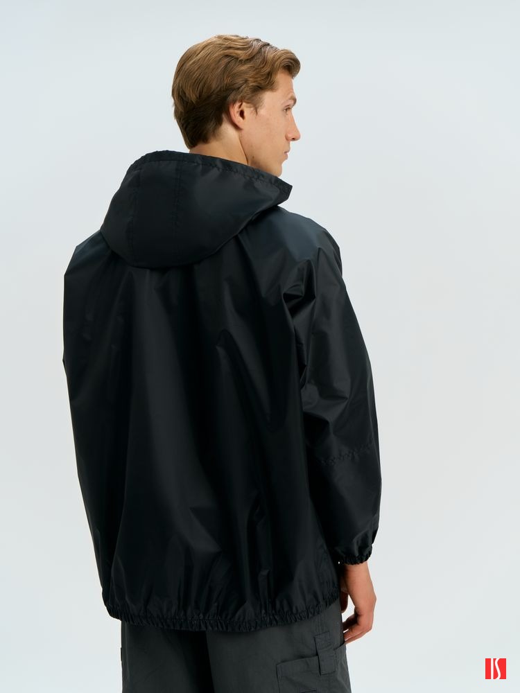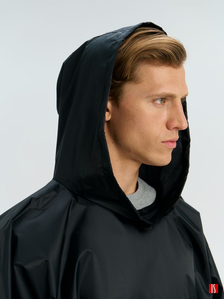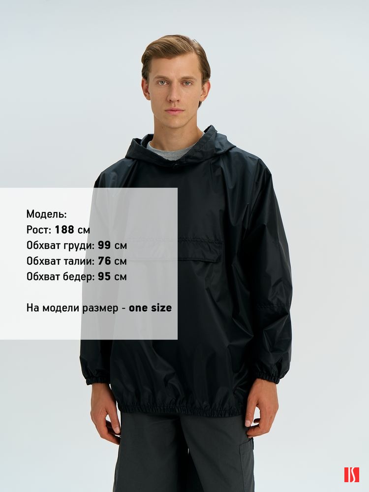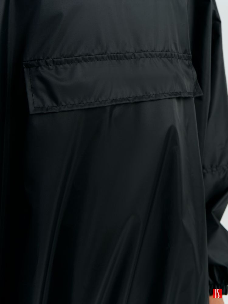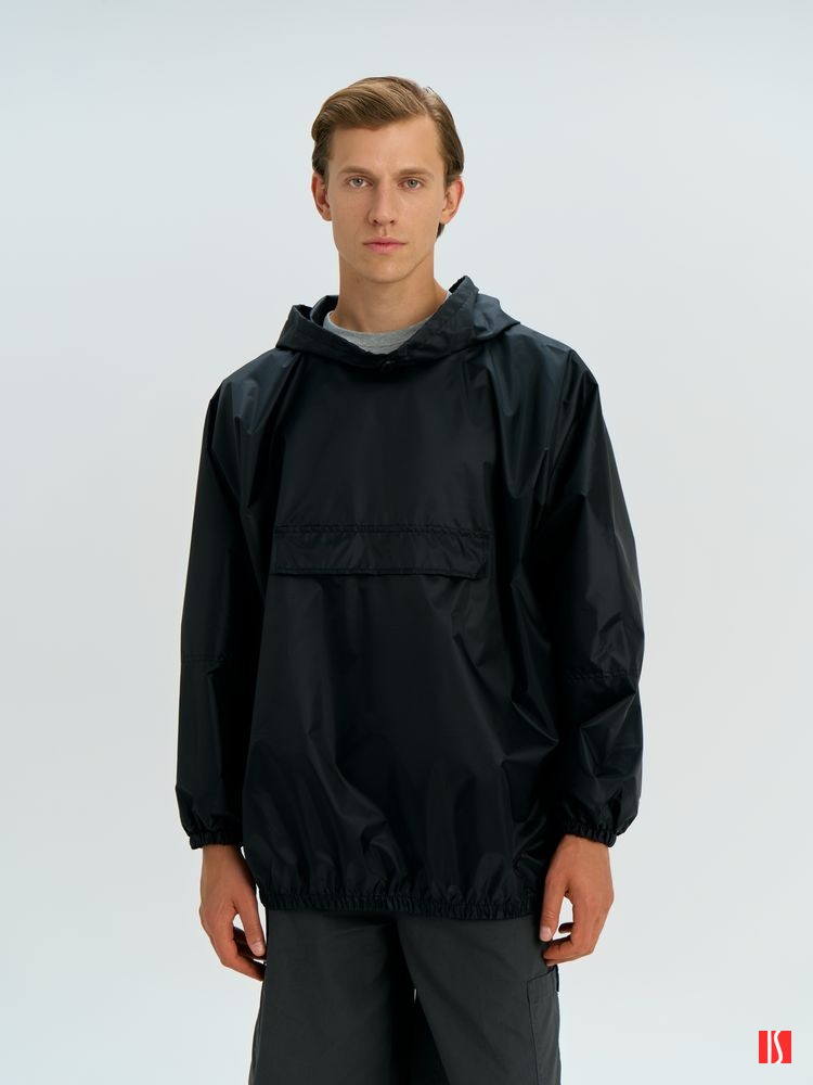 Заказать с нанесением логотипа от компании «Синтезис». Дождевик-анорак унисекс укороченный с капюшоном из ткани таффета.