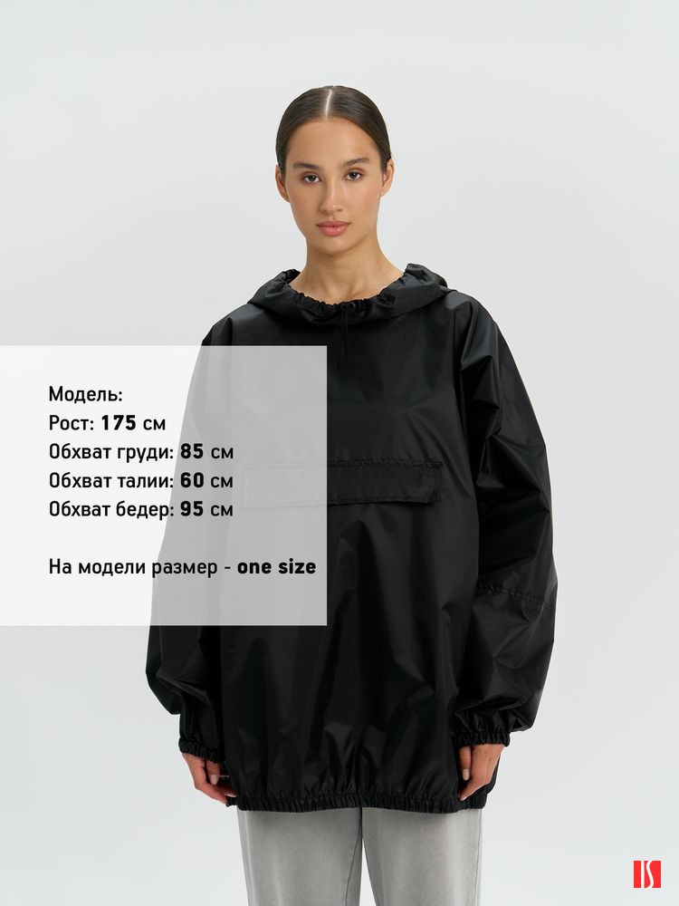Дождевик-анорак Alatau, укороченный, черный, единый размер