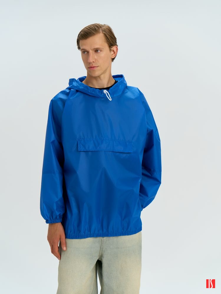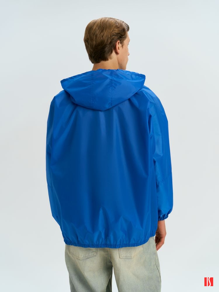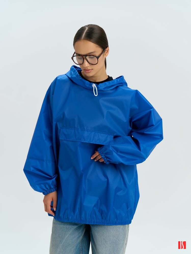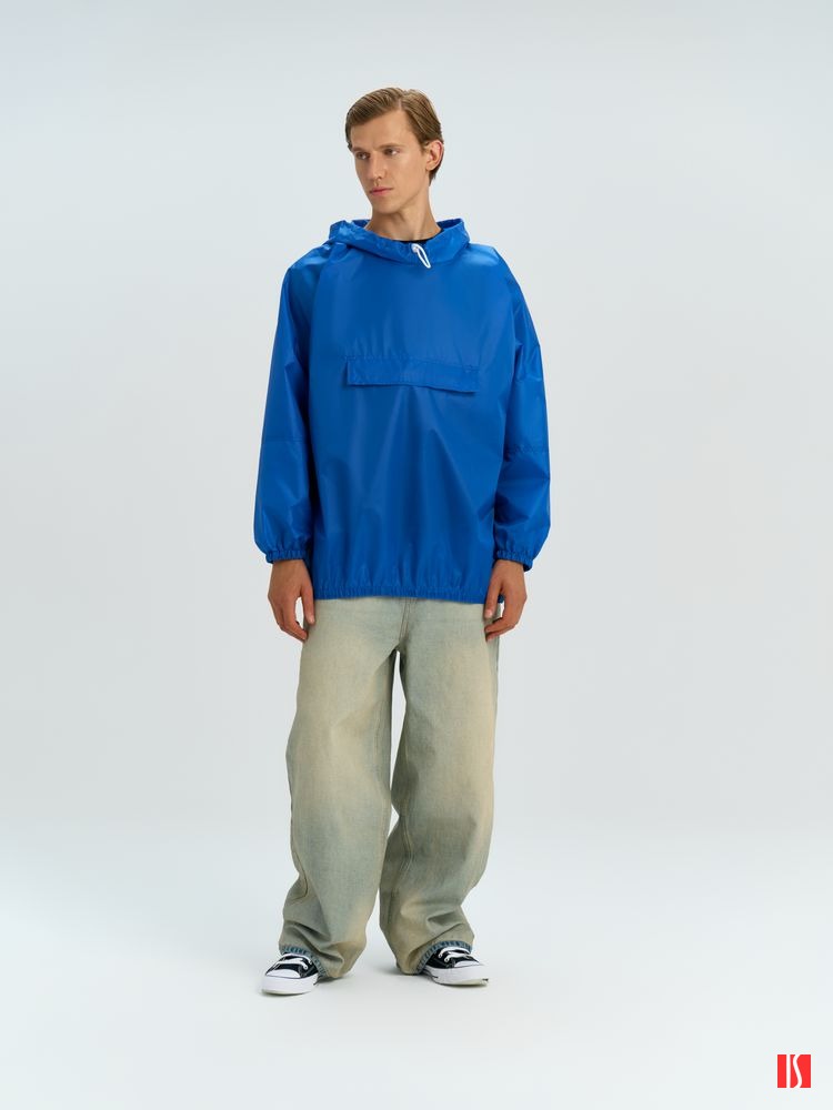 Заказать с нанесением логотипа от компании «Синтезис». Дождевик-анорак унисекс укороченный с капюшоном из ткани таффета.
