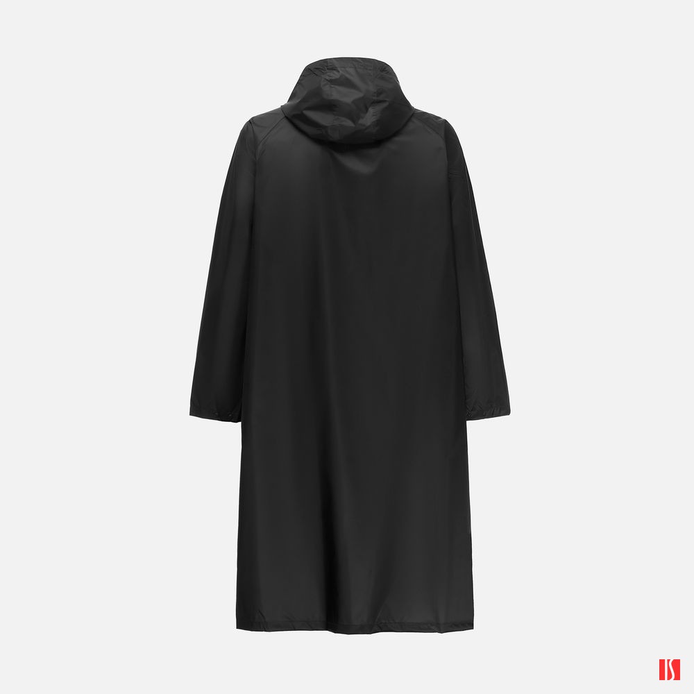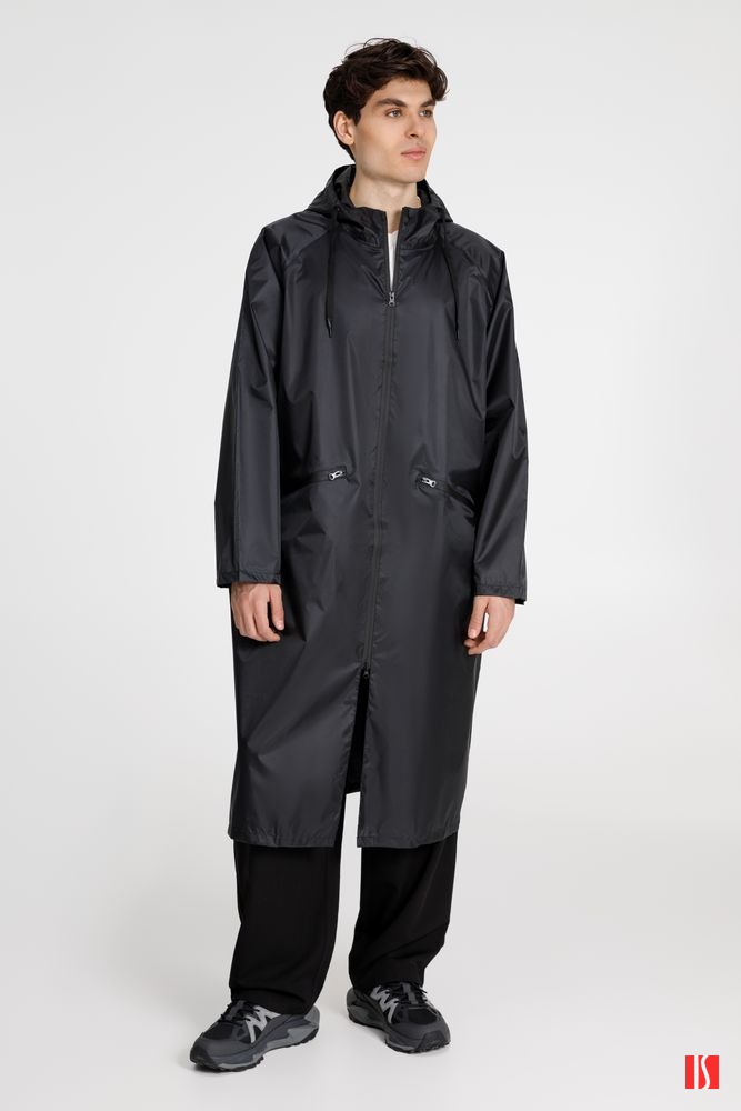 Плащ-дождевик на молнии с капюшоном из ткани таффета с полиуретановой пропиткой для защиты от сильного дождя.
