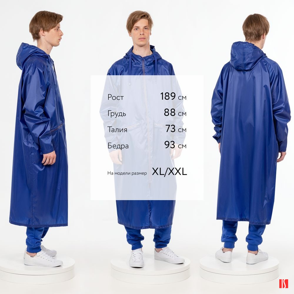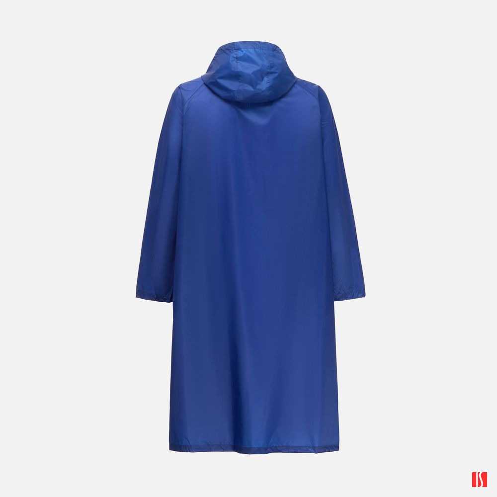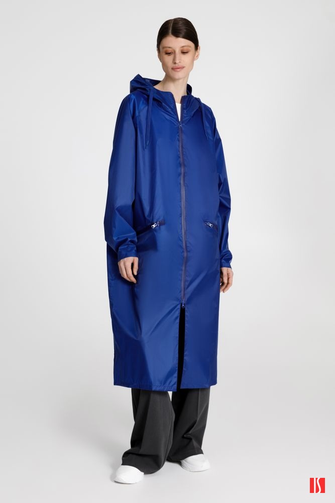 Плащ-дождевик на молнии с капюшоном из ткани таффета с полиуретановой пропиткой для защиты от сильного дождя.
