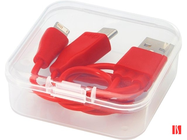 Зарядный кабель 3-в-1 оснащен разъемом USB типа С и двойным разъемом 2-в-1, подходящим для устройств как на Apple® iOS, так и на Android. Micro USB и разъем 2-в-1 до 2 А. Разъем Type-C до 3 А. Поставляется в защитном футляре. Заказать с нанесением логотипа от компании «Синтезис».