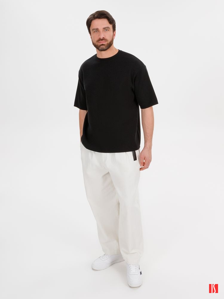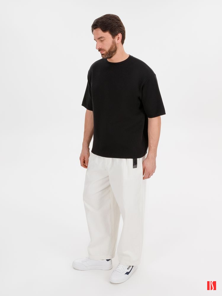 Siluetti Volumica — плотный вязаный джемпер-футболка прямого кроя с круглым вырезом и спущенной линией плеча. Фирменная бирка из силиконовой ленты станет интересной деталью, привлекающей внимание на фоне общей лаконичности модели.