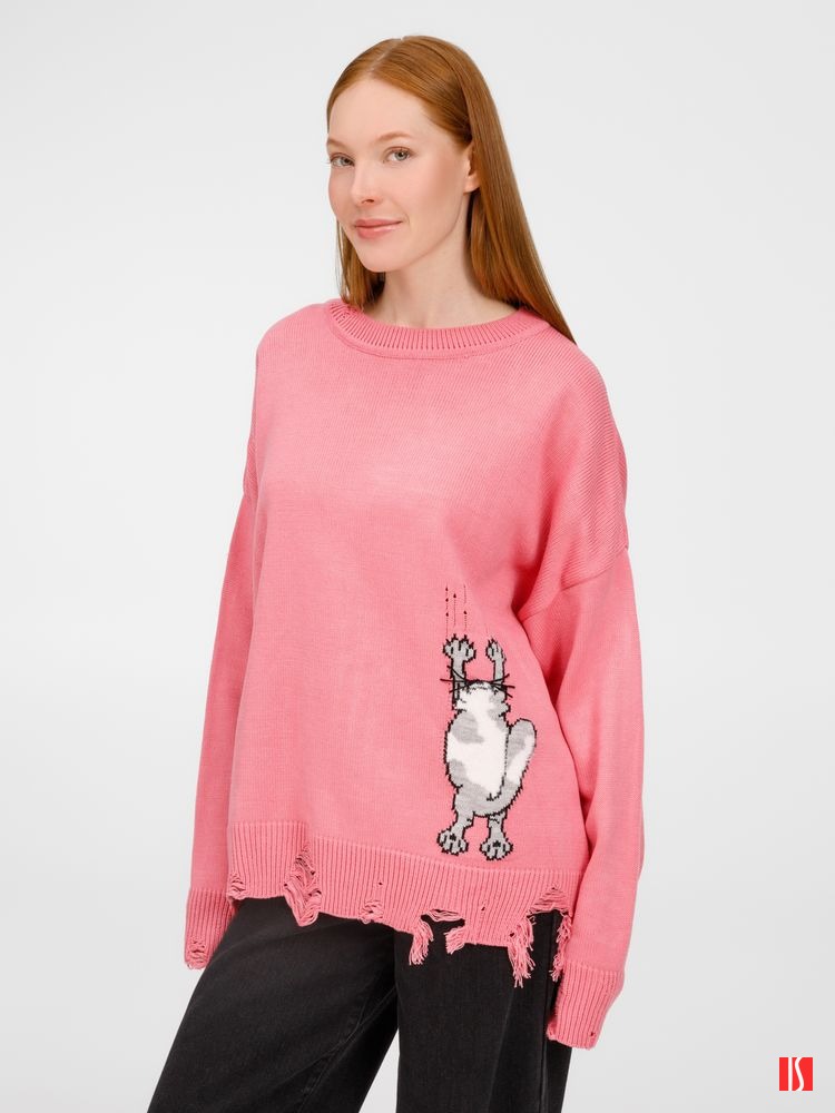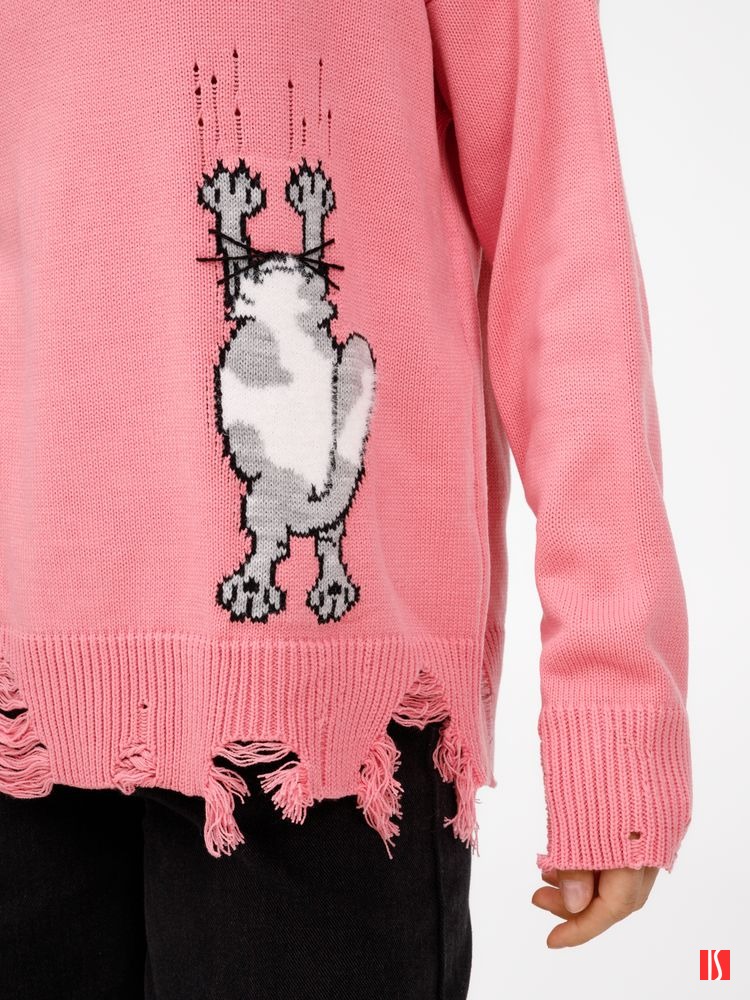 Заказать с нанесением логотипа от компании «Синтезис». В дизайне мягкого джемпера с круглым вырезом Sharpick гранж-эстетика органично сочетается с милым акцентом — пушистым рисунком в виде озорного котика. Получается веселая вариация на тему того, откуда берется модная рваная одежда, а джемпер моментально создает настроение легкой несерьезности. Рваные края изделия добавляют современную нотку, а резинка на вороте, манжетах и по низу обеспечивает удобную посадку.