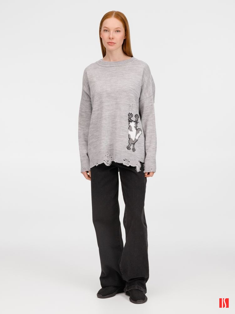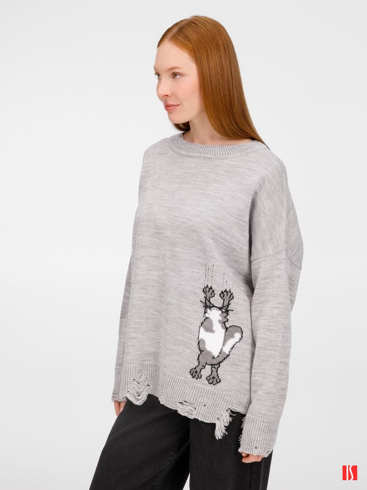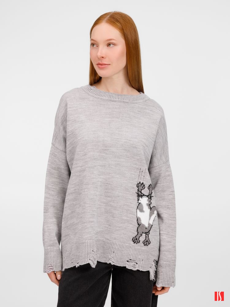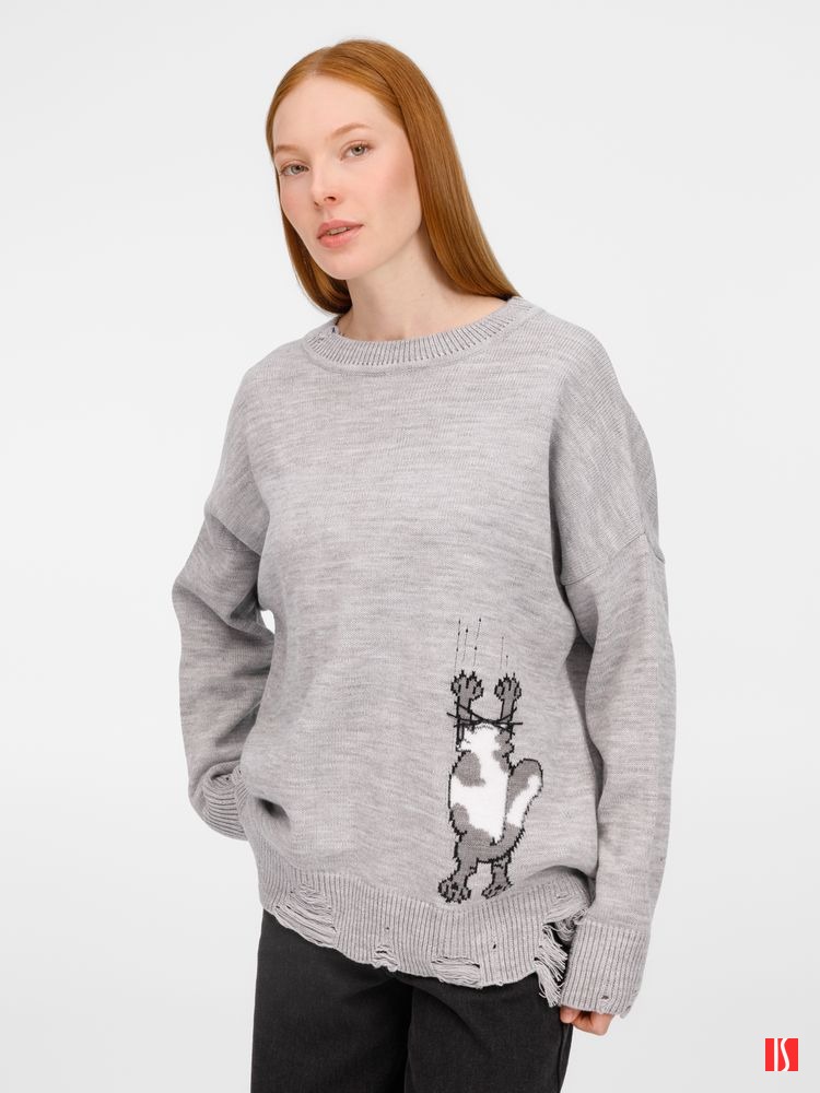 Заказать с нанесением логотипа от компании «Синтезис». В дизайне мягкого джемпера с круглым вырезом Sharpick гранж-эстетика органично сочетается с милым акцентом — пушистым рисунком в виде озорного котика. Получается веселая вариация на тему того, откуда берется модная рваная одежда, а джемпер моментально создает настроение легкой несерьезности. Рваные края изделия добавляют современную нотку, а резинка на вороте, манжетах и по низу обеспечивает удобную посадку.